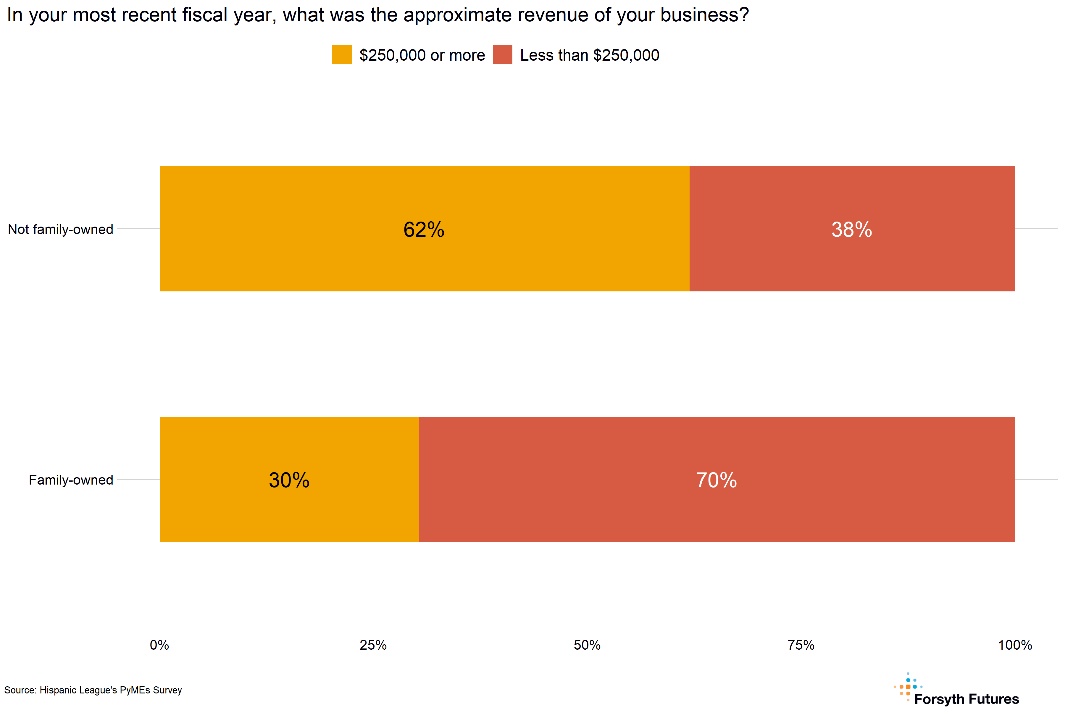 - Businesses that are not family-owned are about twice as likely as those that are to report $250,000 or more in revenue in the most recent fiscal year.