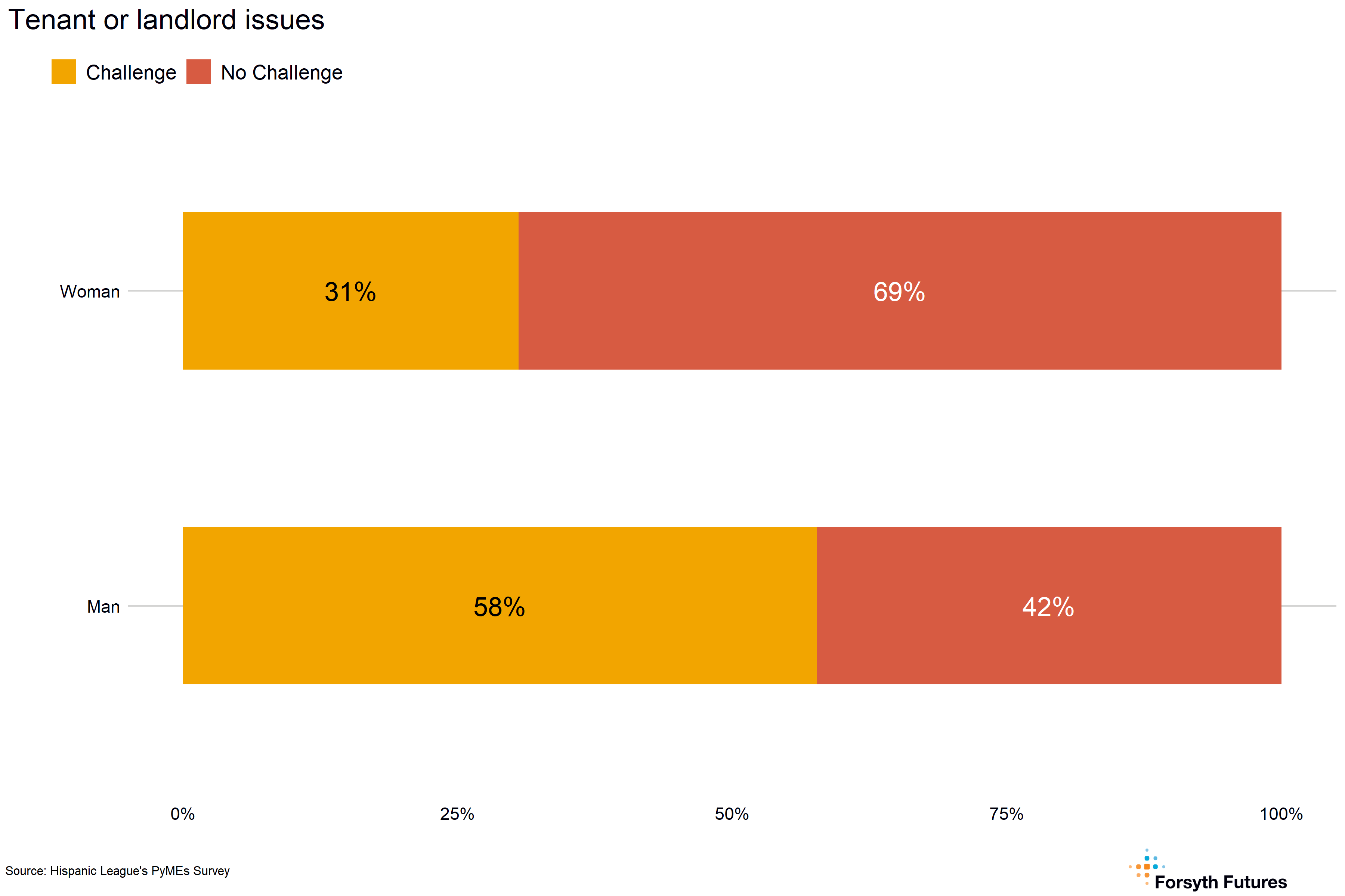 Current and prospective owners who are men are more likely than women to identify tenant or landlord issues as a challenge, with almost twice as many men as women identifying this as a challenge.